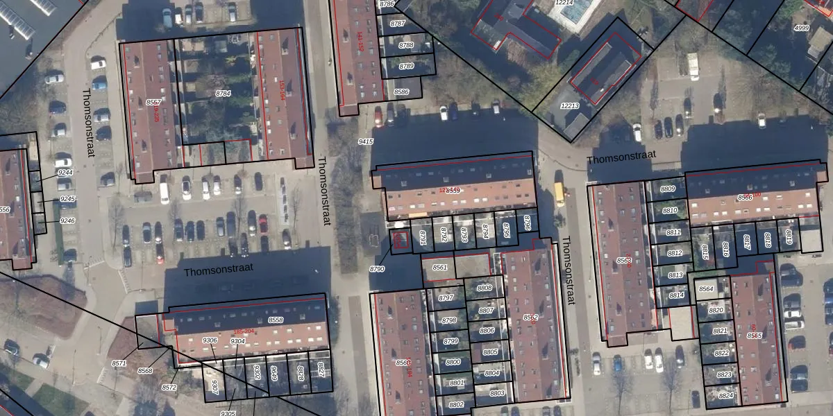 Het perceel waarop Thomsonstraat 139 staat heeft een oppervlakte van 519 m². Dit is een groot perceel. De perceeloppervlakte wordt geregistreerd door het Kadaster. Gedetailleerde informatie over de maten van dit perceel kunt u vinden in het rapport Kadastrale kaart met maatvoering van Thomsonstraat 139.