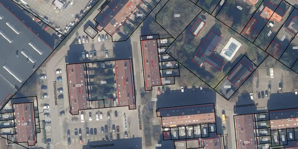 Het perceel waarop Thomsonstraat 141 staat heeft een oppervlakte van 402 m². Dit is een groot perceel. De perceeloppervlakte wordt geregistreerd door het Kadaster. Gedetailleerde informatie over de maten van dit perceel kunt u vinden in het rapport Kadastrale kaart met maatvoering van Thomsonstraat 141.