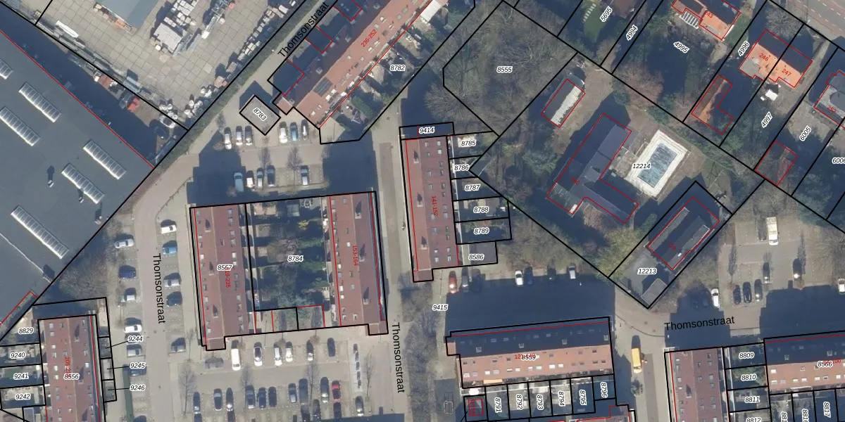 Het perceel waarop Thomsonstraat 142 staat heeft een oppervlakte van 402 m². Dit is een groot perceel. De perceeloppervlakte wordt geregistreerd door het Kadaster. Gedetailleerde informatie over de maten van dit perceel kunt u vinden in het rapport Kadastrale kaart met maatvoering van Thomsonstraat 142.