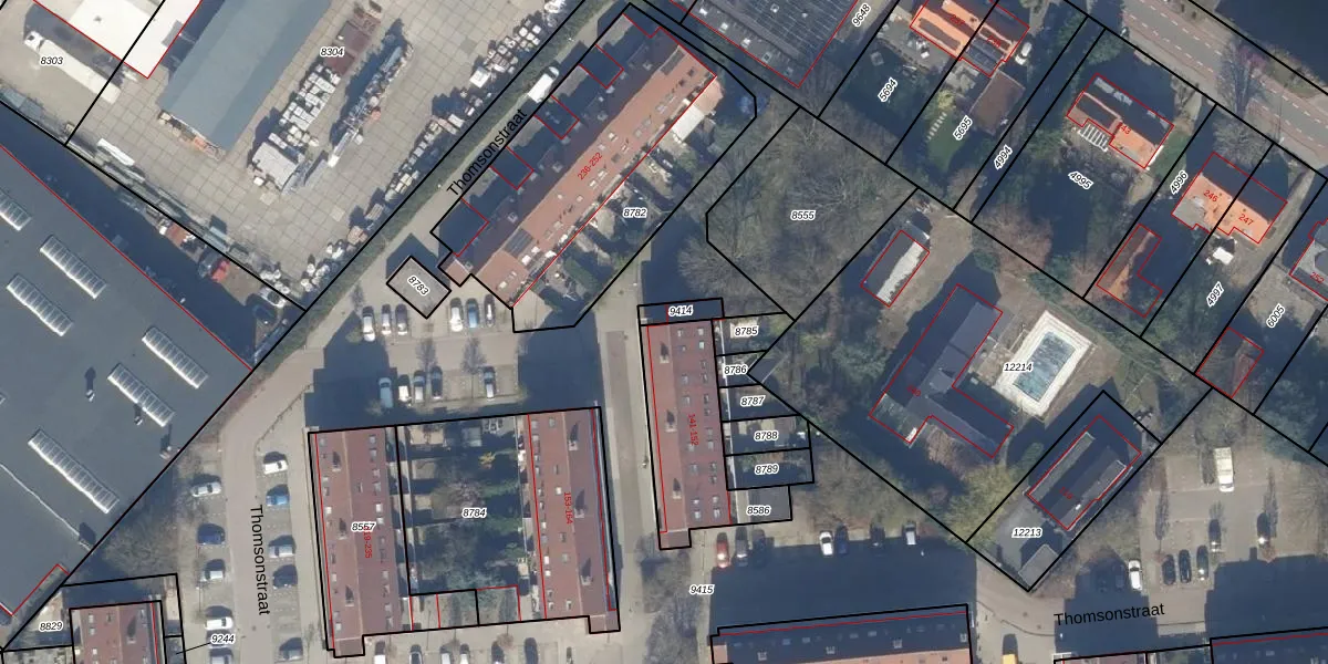 Het perceel waarop Thomsonstraat 145 staat heeft een oppervlakte van 402 m². Dit is een groot perceel. De perceeloppervlakte wordt geregistreerd door het Kadaster. Gedetailleerde informatie over de maten van dit perceel kunt u vinden in het rapport Kadastrale kaart met maatvoering van Thomsonstraat 145.