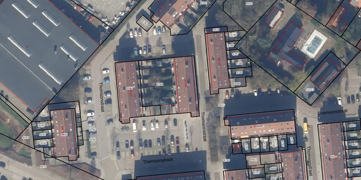 Het perceel waarop Thomsonstraat 162 staat heeft een oppervlakte van 919 m². Dit is een groot perceel. De perceeloppervlakte wordt geregistreerd door het Kadaster. Gedetailleerde informatie over de maten van dit perceel kunt u vinden in het rapport Kadastrale kaart met maatvoering van Thomsonstraat 162.