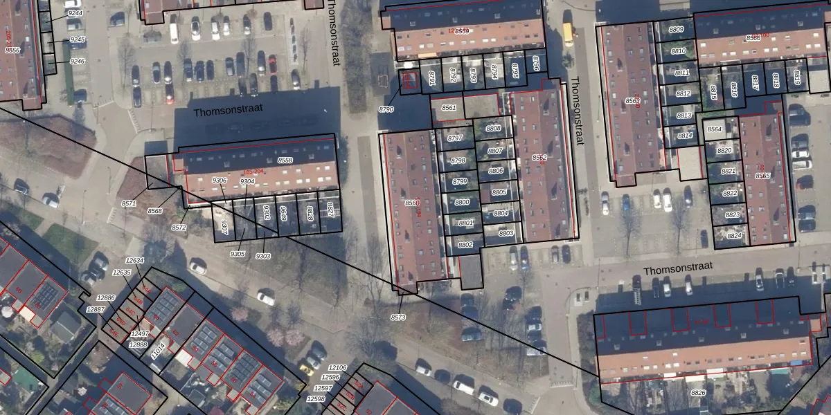 Het perceel waarop Thomsonstraat 174 staat heeft een oppervlakte van 565 m². Dit is een groot perceel. De perceeloppervlakte wordt geregistreerd door het Kadaster. Gedetailleerde informatie over de maten van dit perceel kunt u vinden in het rapport Kadastrale kaart met maatvoering van Thomsonstraat 174.