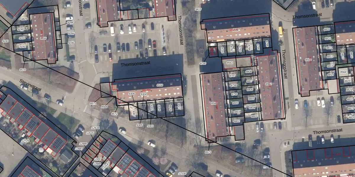 Het perceel waarop Thomsonstraat 191 staat heeft een oppervlakte van 562 m². Dit is een groot perceel. De perceeloppervlakte wordt geregistreerd door het Kadaster. Gedetailleerde informatie over de maten van dit perceel kunt u vinden in het rapport Kadastrale kaart met maatvoering van Thomsonstraat 191.