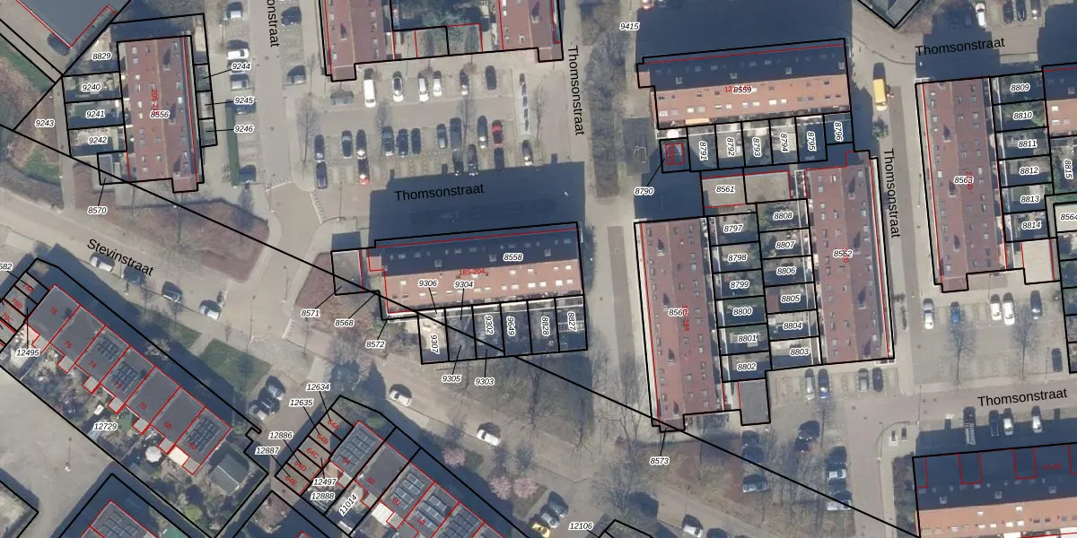 Het perceel waarop Thomsonstraat 192 staat heeft een oppervlakte van 562 m². Dit is een groot perceel. De perceeloppervlakte wordt geregistreerd door het Kadaster. Gedetailleerde informatie over de maten van dit perceel kunt u vinden in het rapport Kadastrale kaart met maatvoering van Thomsonstraat 192.