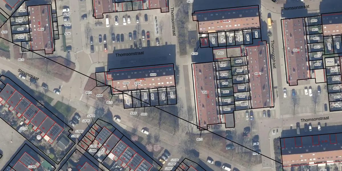 Het perceel waarop Thomsonstraat 198 staat heeft een oppervlakte van 562 m². Dit is een groot perceel. De perceeloppervlakte wordt geregistreerd door het Kadaster. Gedetailleerde informatie over de maten van dit perceel kunt u vinden in het rapport Kadastrale kaart met maatvoering van Thomsonstraat 198.
