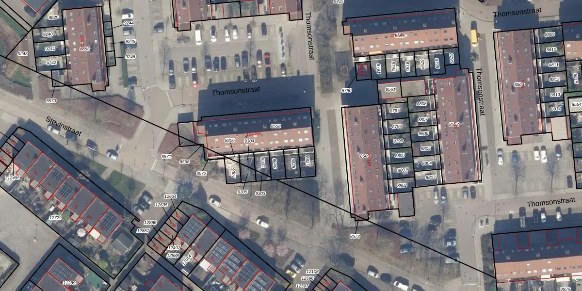 Het perceel waarop Thomsonstraat 199 staat heeft een oppervlakte van 562 m². Dit is een groot perceel. De perceeloppervlakte wordt geregistreerd door het Kadaster. Gedetailleerde informatie over de maten van dit perceel kunt u vinden in het rapport Kadastrale kaart met maatvoering van Thomsonstraat 199.