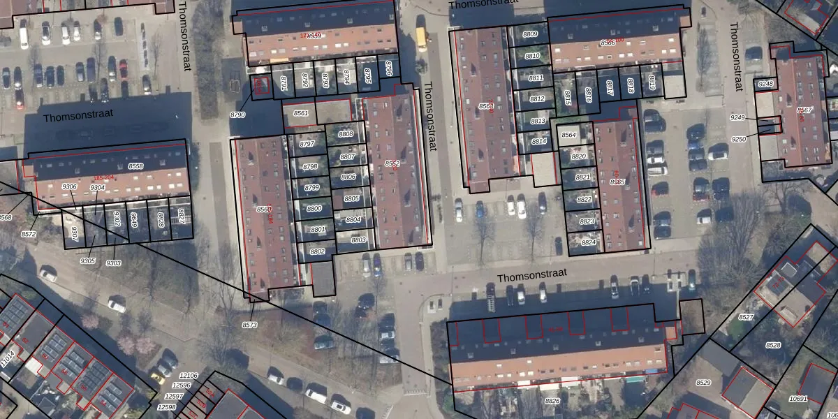 Het perceel waarop Thomsonstraat 2 staat heeft een oppervlakte van 611 m². Dit is een groot perceel. De perceeloppervlakte wordt geregistreerd door het Kadaster. Gedetailleerde informatie over de maten van dit perceel kunt u vinden in het rapport Kadastrale kaart met maatvoering van Thomsonstraat 2.