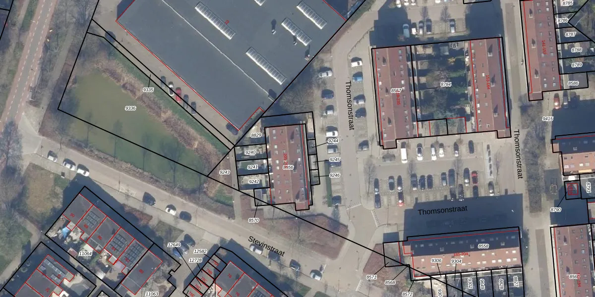 Het perceel waarop Thomsonstraat 207 staat heeft een oppervlakte van 395 m². Dit is een groot perceel. De perceeloppervlakte wordt geregistreerd door het Kadaster. Gedetailleerde informatie over de maten van dit perceel kunt u vinden in het rapport Kadastrale kaart met maatvoering van Thomsonstraat 207.