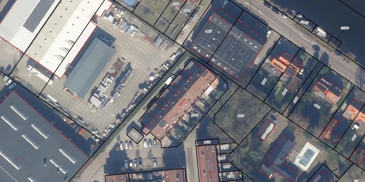 Het perceel waarop Thomsonstraat 240 staat heeft een oppervlakte van 1210 m². Dit is een zeer groot perceel. De perceeloppervlakte wordt geregistreerd door het Kadaster. Gedetailleerde informatie over de maten van dit perceel kunt u vinden in het rapport Kadastrale kaart met maatvoering van Thomsonstraat 240.