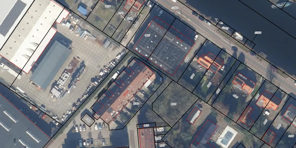 Het perceel waarop Thomsonstraat 252 staat heeft een oppervlakte van 1210 m². Dit is een zeer groot perceel. De perceeloppervlakte wordt geregistreerd door het Kadaster. Gedetailleerde informatie over de maten van dit perceel kunt u vinden in het rapport Kadastrale kaart met maatvoering van Thomsonstraat 252.