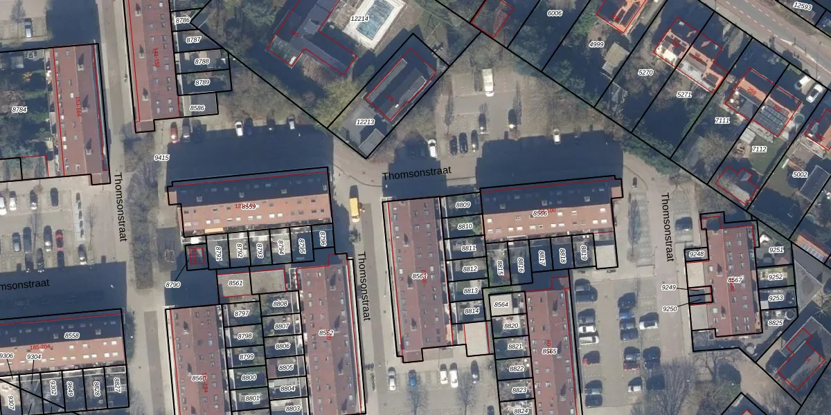 Het perceel waarop Thomsonstraat 27 staat heeft een oppervlakte van 589 m². Dit is een groot perceel. De perceeloppervlakte wordt geregistreerd door het Kadaster. Gedetailleerde informatie over de maten van dit perceel kunt u vinden in het rapport Kadastrale kaart met maatvoering van Thomsonstraat 27.