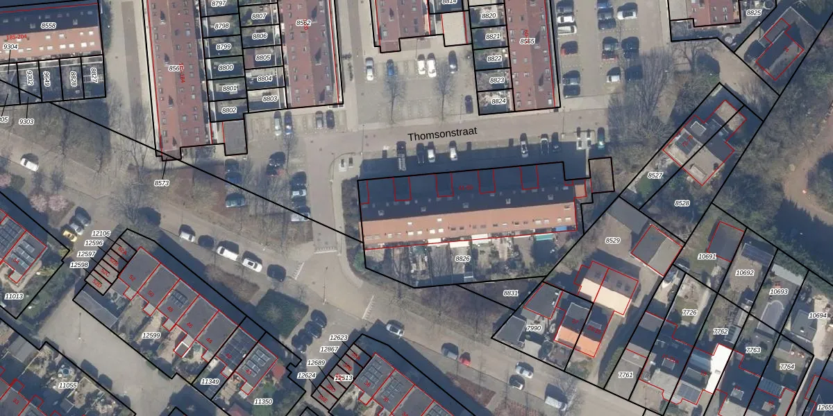 Het perceel waarop Thomsonstraat 43 staat heeft een oppervlakte van 1400 m². Dit is een zeer groot perceel. De perceeloppervlakte wordt geregistreerd door het Kadaster. Gedetailleerde informatie over de maten van dit perceel kunt u vinden in het rapport Kadastrale kaart met maatvoering van Thomsonstraat 43.