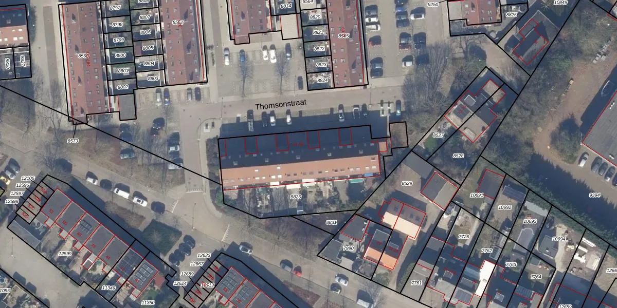 Thomsonstraat 46 is gelegen op kadastraal perceel HLM03H8826. Deze kadastrale aanduiding is uniek en wordt gebruikt door het Kadaster om eigendomsrechten en andere zakelijke rechten vast te leggen. Het perceel maakt onderdeel uit van de kadastrale gemeente Haarlemmermeer.