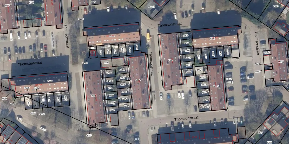 Het perceel waarop Thomsonstraat 5 staat heeft een oppervlakte van 611 m². Dit is een groot perceel. De perceeloppervlakte wordt geregistreerd door het Kadaster. Gedetailleerde informatie over de maten van dit perceel kunt u vinden in het rapport Kadastrale kaart met maatvoering van Thomsonstraat 5.