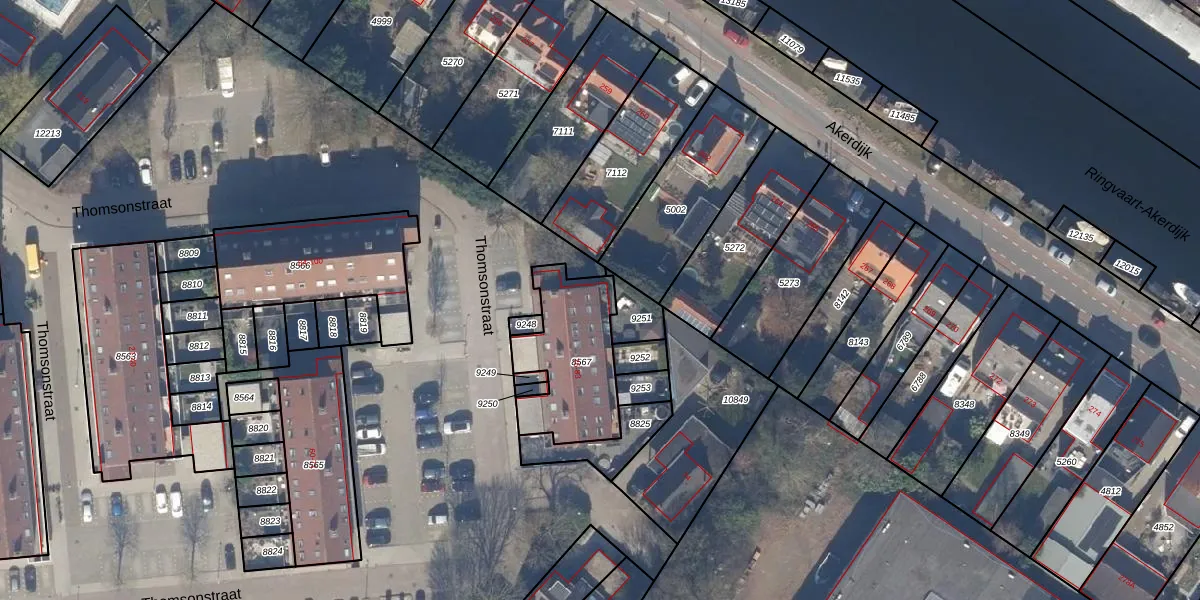 Het perceel waarop Thomsonstraat 83 staat heeft een oppervlakte van 399 m². Dit is een groot perceel. De perceeloppervlakte wordt geregistreerd door het Kadaster. Gedetailleerde informatie over de maten van dit perceel kunt u vinden in het rapport Kadastrale kaart met maatvoering van Thomsonstraat 83.