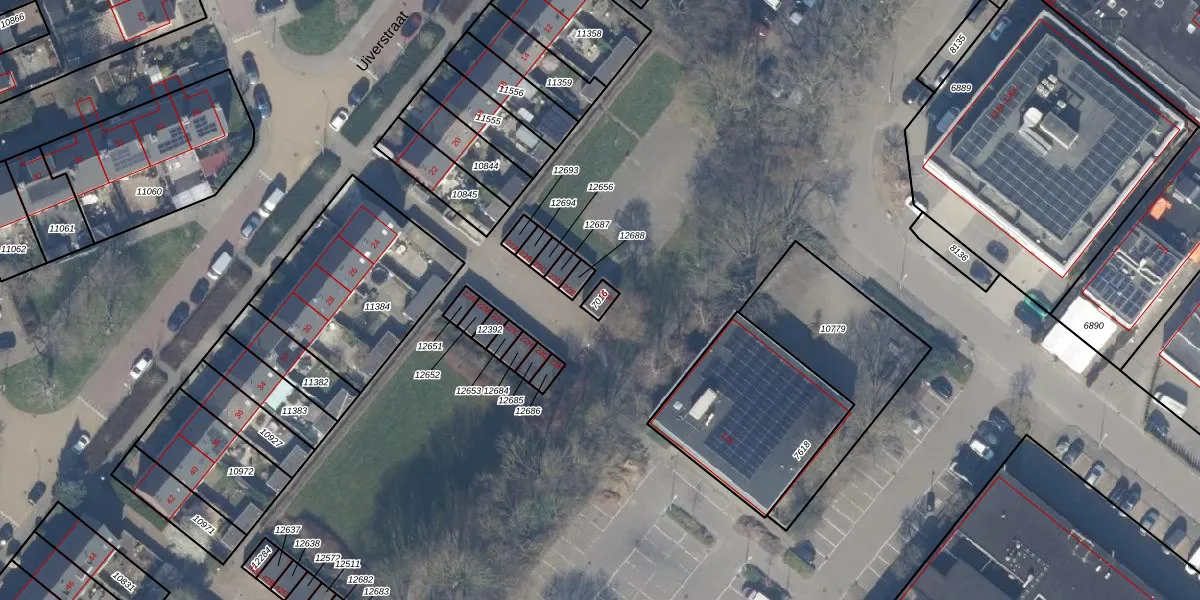Het perceel waarop Uiverstraat 22-P staat heeft een oppervlakte van 21 m². Dit is een klein perceel. De perceeloppervlakte wordt geregistreerd door het Kadaster. Gedetailleerde informatie over de maten van dit perceel kunt u vinden in het rapport Kadastrale kaart met maatvoering van Uiverstraat 22-P.