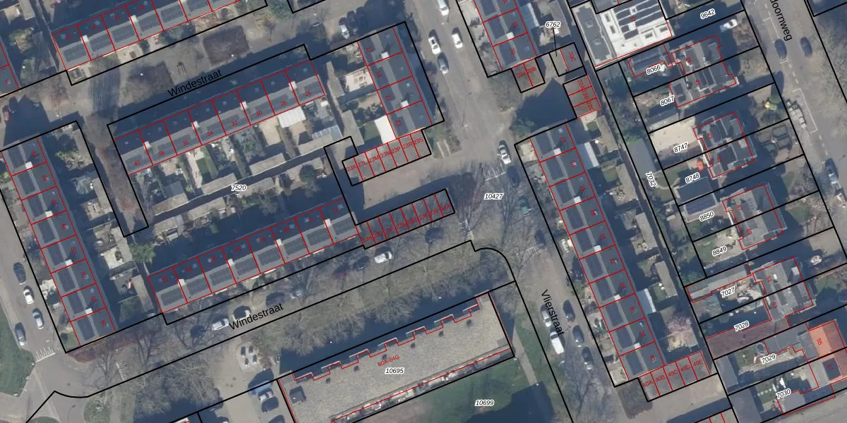 Het perceel waarop Vlierstraat 23-C staat heeft een oppervlakte van 4438 m². Dit is een zeer groot perceel. De perceeloppervlakte wordt geregistreerd door het Kadaster. Gedetailleerde informatie over de maten van dit perceel kunt u vinden in het rapport Kadastrale kaart met maatvoering van Vlierstraat 23-C.