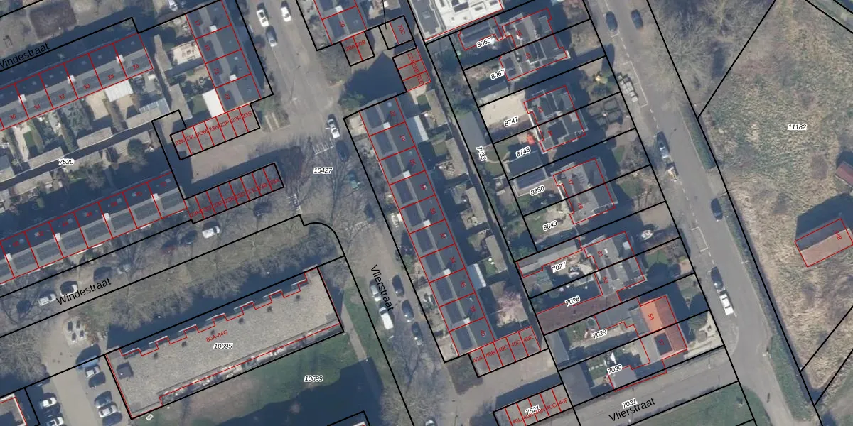Het perceel waarop Vlierstraat 30 staat heeft een oppervlakte van 4740 m². Dit is een zeer groot perceel. De perceeloppervlakte wordt geregistreerd door het Kadaster. Gedetailleerde informatie over de maten van dit perceel kunt u vinden in het rapport Kadastrale kaart met maatvoering van Vlierstraat 30.