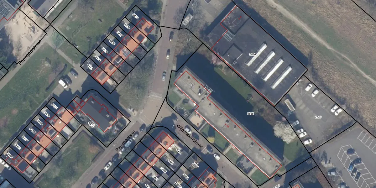 Het perceel waarop Wijnmalenstraat 7 staat heeft een oppervlakte van 2815 m². Dit is een zeer groot perceel. De perceeloppervlakte wordt geregistreerd door het Kadaster. Gedetailleerde informatie over de maten van dit perceel kunt u vinden in het rapport Kadastrale kaart met maatvoering van Wijnmalenstraat 7.