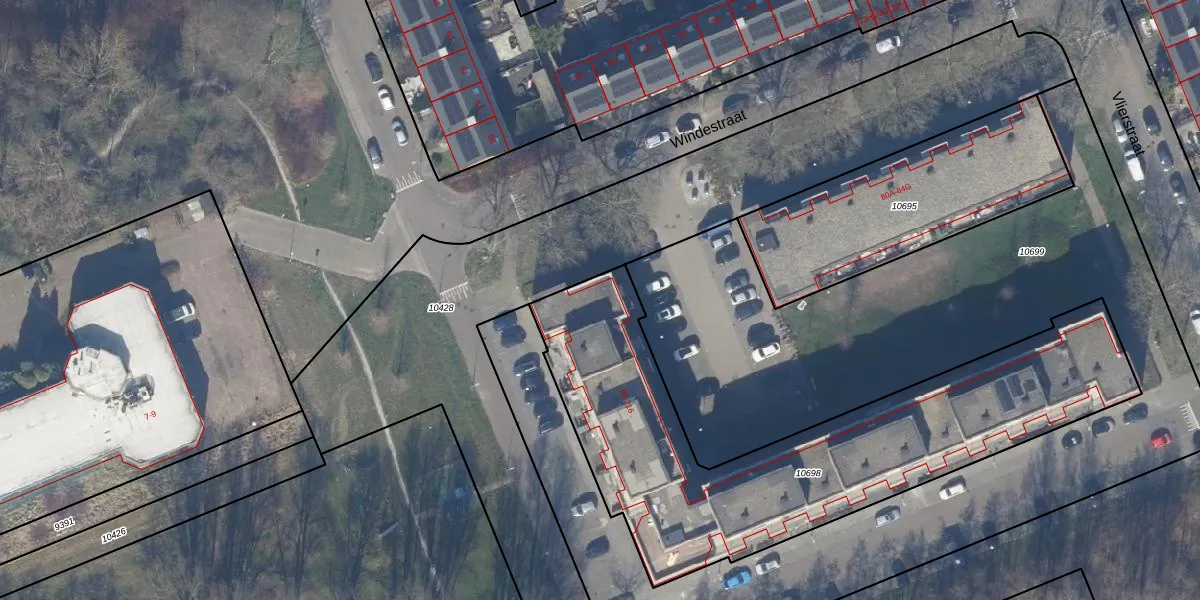 Het perceel waarop Windestraat 108 staat heeft een oppervlakte van 2008 m². Dit is een zeer groot perceel. De perceeloppervlakte wordt geregistreerd door het Kadaster. Gedetailleerde informatie over de maten van dit perceel kunt u vinden in het rapport Kadastrale kaart met maatvoering van Windestraat 108.