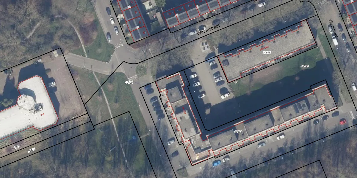 Het perceel waarop Windestraat 110 staat heeft een oppervlakte van 2008 m². Dit is een zeer groot perceel. De perceeloppervlakte wordt geregistreerd door het Kadaster. Gedetailleerde informatie over de maten van dit perceel kunt u vinden in het rapport Kadastrale kaart met maatvoering van Windestraat 110.