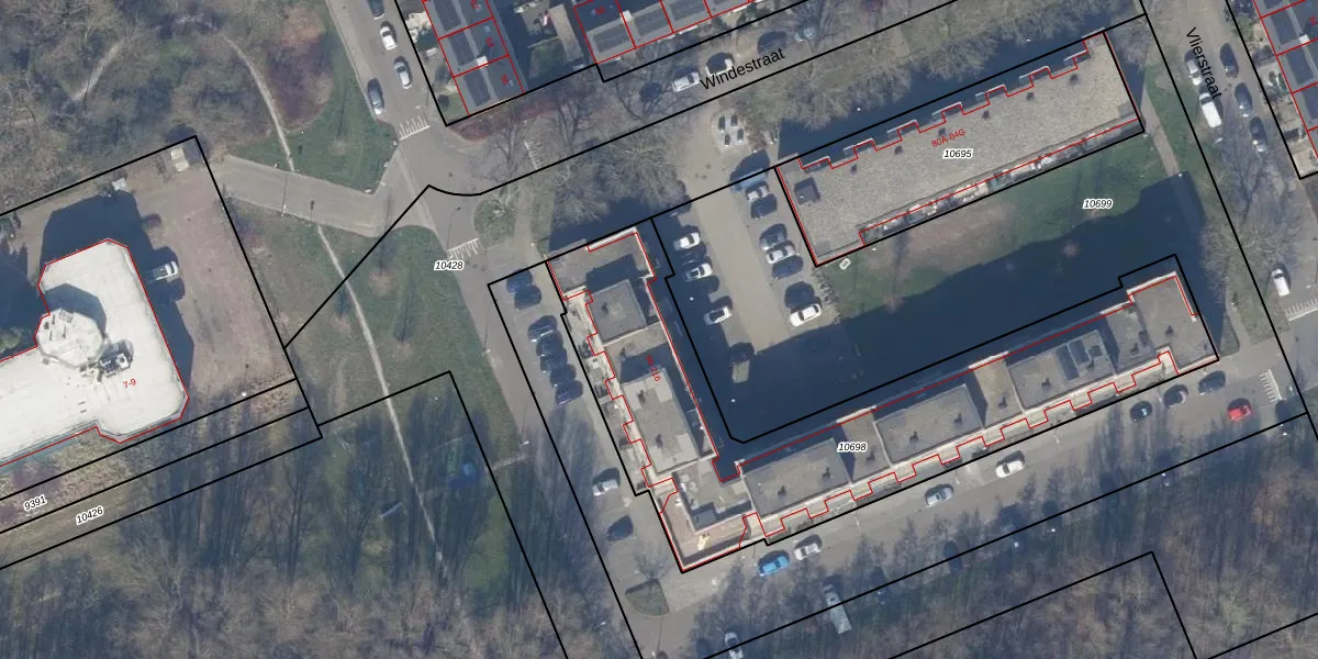 Het perceel waarop Windestraat 176 staat heeft een oppervlakte van 2008 m². Dit is een zeer groot perceel. De perceeloppervlakte wordt geregistreerd door het Kadaster. Gedetailleerde informatie over de maten van dit perceel kunt u vinden in het rapport Kadastrale kaart met maatvoering van Windestraat 176.