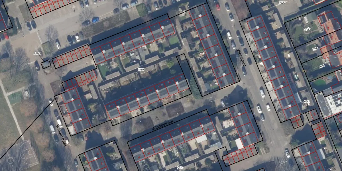Het perceel waarop Windestraat 22 staat heeft een oppervlakte van 4589 m². Dit is een zeer groot perceel. De perceeloppervlakte wordt geregistreerd door het Kadaster. Gedetailleerde informatie over de maten van dit perceel kunt u vinden in het rapport Kadastrale kaart met maatvoering van Windestraat 22.