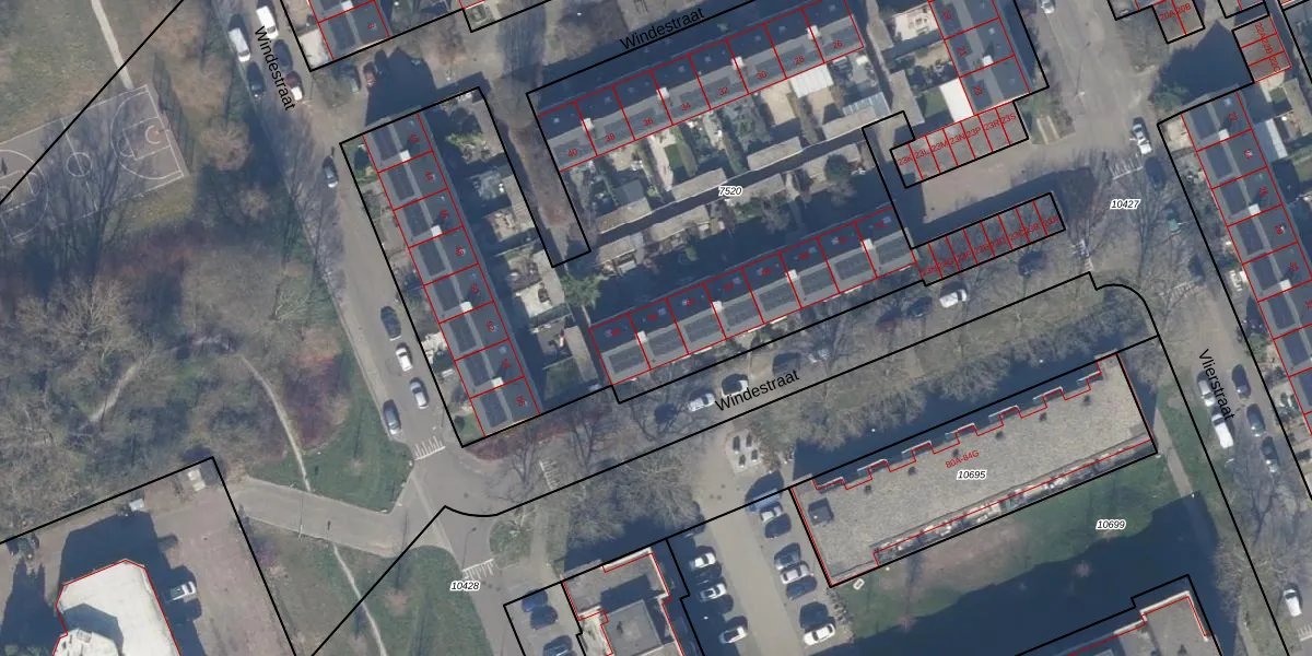 Het perceel waarop Windestraat 60 staat heeft een oppervlakte van 4438 m². Dit is een zeer groot perceel. De perceeloppervlakte wordt geregistreerd door het Kadaster. Gedetailleerde informatie over de maten van dit perceel kunt u vinden in het rapport Kadastrale kaart met maatvoering van Windestraat 60.