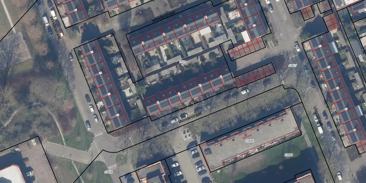 Het perceel waarop Windestraat 64 staat heeft een oppervlakte van 4438 m². Dit is een zeer groot perceel. De perceeloppervlakte wordt geregistreerd door het Kadaster. Gedetailleerde informatie over de maten van dit perceel kunt u vinden in het rapport Kadastrale kaart met maatvoering van Windestraat 64.