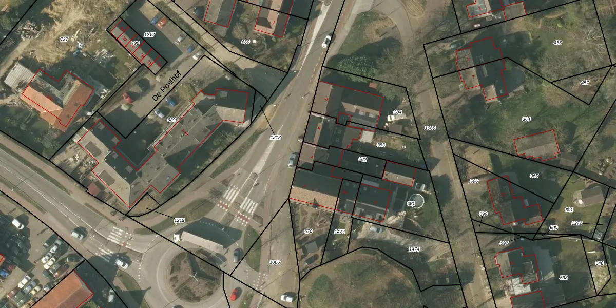 Gebruik de zoekbalk of klik op een perceel voor informatie over de adressen binnen dit perceel.