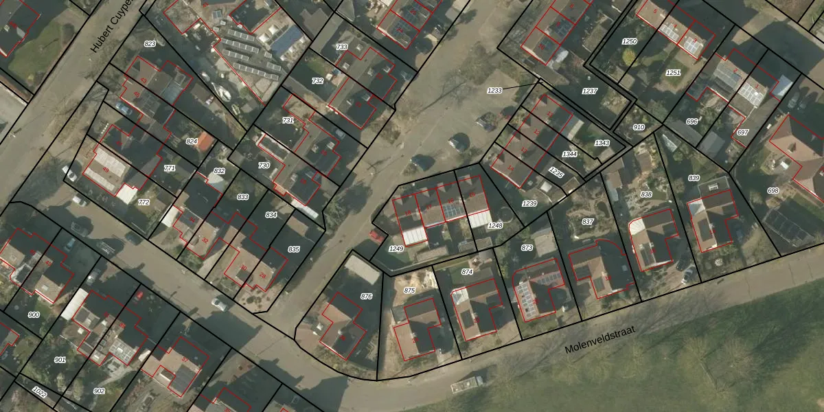 Het perceel waarop Genroyhof 18 staat heeft een oppervlakte van 441 m². Dit is een groot perceel. De perceeloppervlakte wordt geregistreerd door het Kadaster. Gedetailleerde informatie over de maten van dit perceel kunt u vinden in het rapport Kadastrale kaart met maatvoering van Genroyhof 18.