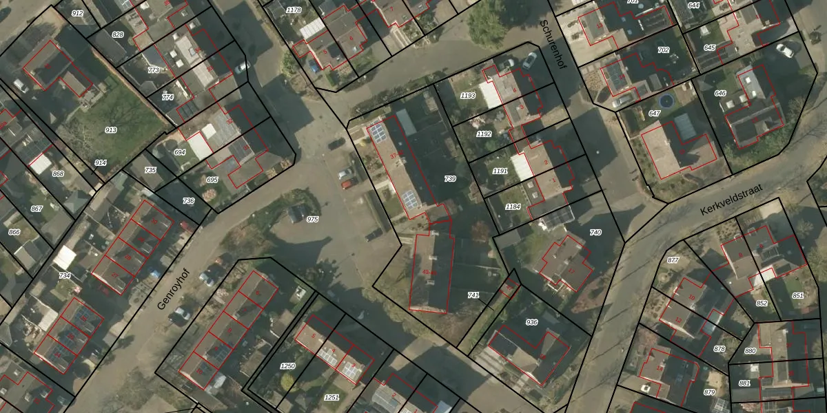 Het perceel waarop Genroyhof 41 staat heeft een oppervlakte van 1379 m². Dit is een zeer groot perceel. De perceeloppervlakte wordt geregistreerd door het Kadaster. Gedetailleerde informatie over de maten van dit perceel kunt u vinden in het rapport Kadastrale kaart met maatvoering van Genroyhof 41.