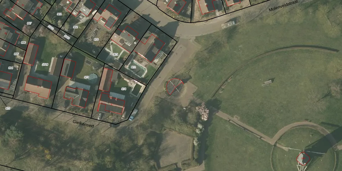 Het perceel waarop Gielkenserf 2 staat heeft een oppervlakte van 3,8 ha. Dit is een zeer groot perceel. De perceeloppervlakte wordt geregistreerd door het Kadaster. Gedetailleerde informatie over de maten van dit perceel kunt u vinden in het rapport Kadastrale kaart met maatvoering van Gielkenserf 2.