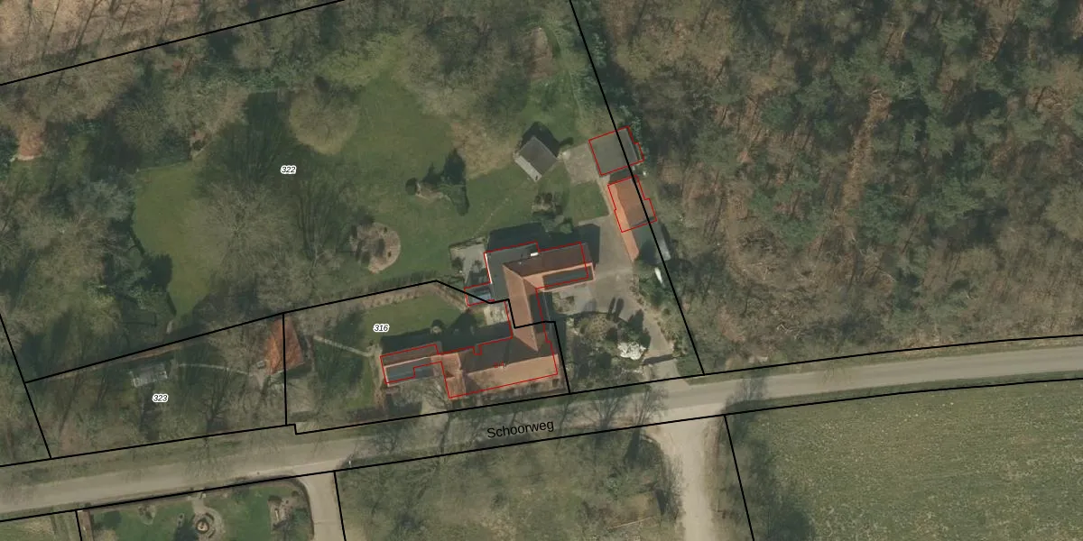 Schoorweg 2 is gelegen op kadastraal perceel HHS00P322. Deze kadastrale aanduiding is uniek en wordt gebruikt door het Kadaster om eigendomsrechten en andere zakelijke rechten vast te leggen. Het perceel maakt onderdeel uit van de kadastrale gemeente Heythuysen.