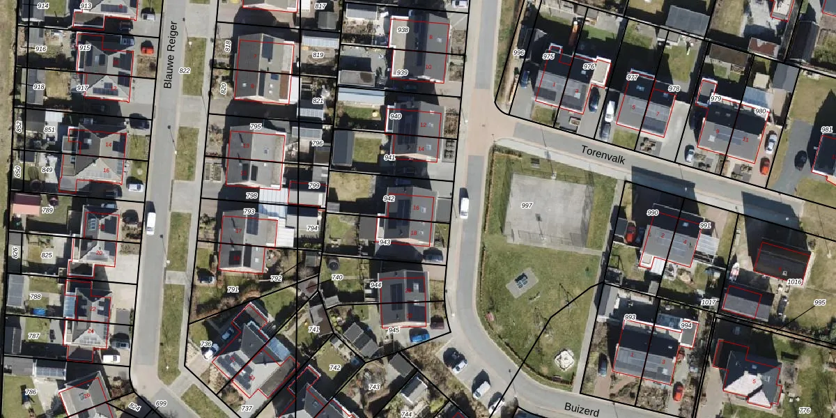 Het perceel waarop Buizerd 16 staat heeft een oppervlakte van 303 m². Dit is een groot perceel. De perceeloppervlakte wordt geregistreerd door het Kadaster. Gedetailleerde informatie over de maten van dit perceel kunt u vinden in het rapport Kadastrale kaart met maatvoering van Buizerd 16.
