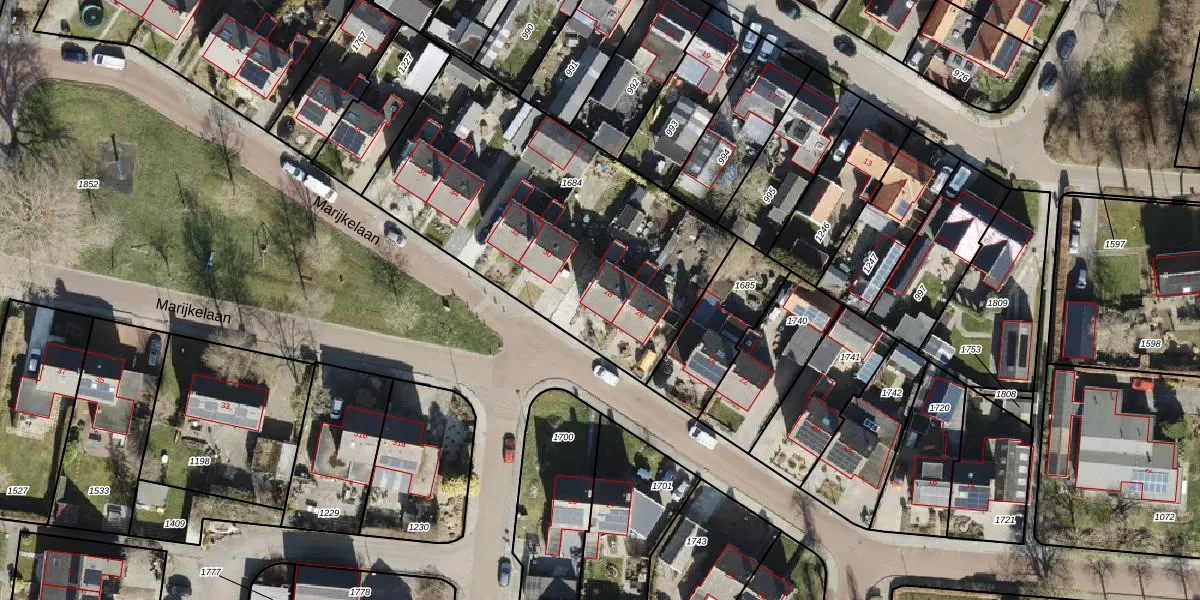 Het perceel waarop Marijkelaan 28 staat heeft een oppervlakte van 1618 m². Dit is een zeer groot perceel. De perceeloppervlakte wordt geregistreerd door het Kadaster. Gedetailleerde informatie over de maten van dit perceel kunt u vinden in het rapport Kadastrale kaart met maatvoering van Marijkelaan 28.