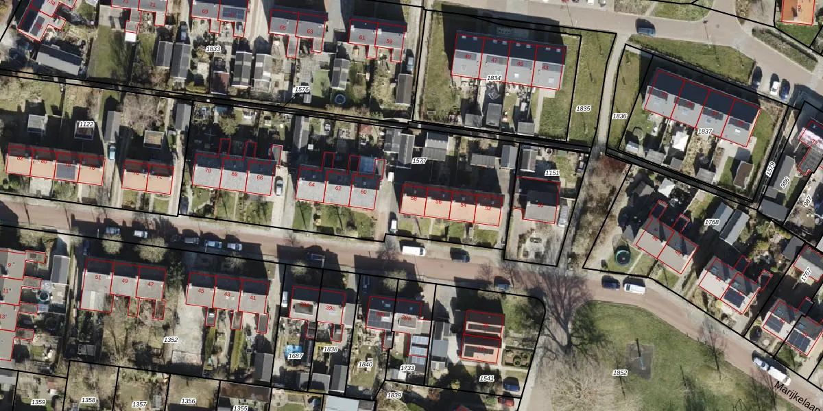 Het perceel waarop Marijkelaan 58 staat heeft een oppervlakte van 2200 m². Dit is een zeer groot perceel. De perceeloppervlakte wordt geregistreerd door het Kadaster. Gedetailleerde informatie over de maten van dit perceel kunt u vinden in het rapport Kadastrale kaart met maatvoering van Marijkelaan 58.