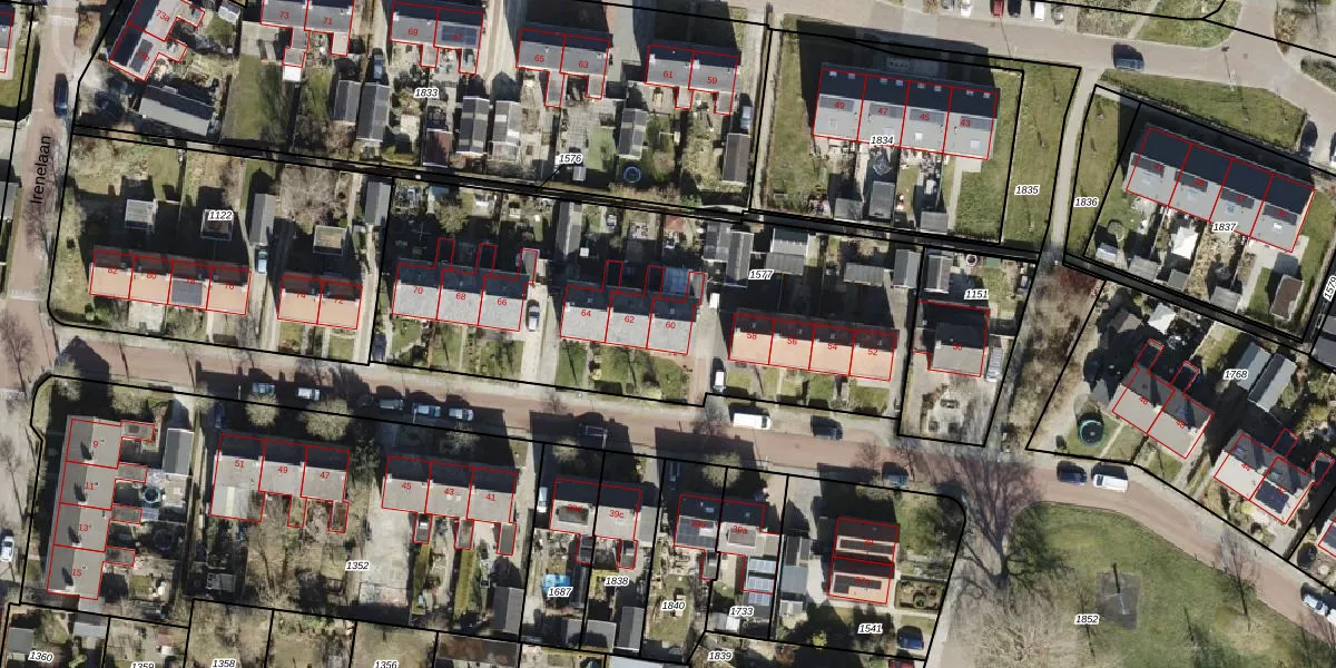 Het perceel waarop Marijkelaan 60 staat heeft een oppervlakte van 2200 m². Dit is een zeer groot perceel. De perceeloppervlakte wordt geregistreerd door het Kadaster. Gedetailleerde informatie over de maten van dit perceel kunt u vinden in het rapport Kadastrale kaart met maatvoering van Marijkelaan 60.