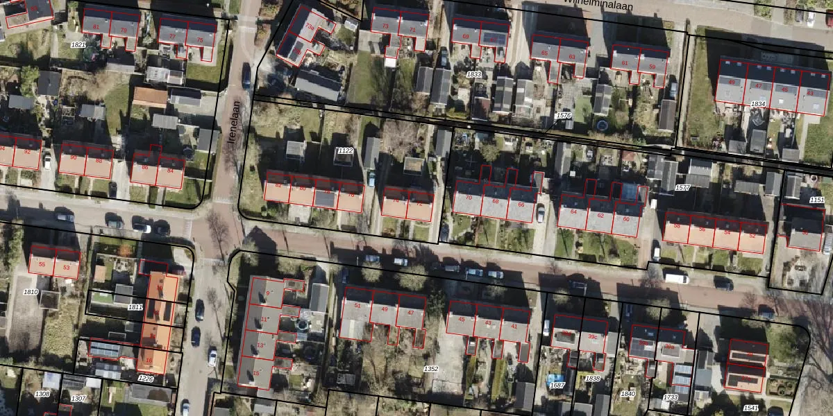 Het perceel waarop Marijkelaan 72 staat heeft een oppervlakte van 1370 m². Dit is een zeer groot perceel. De perceeloppervlakte wordt geregistreerd door het Kadaster. Gedetailleerde informatie over de maten van dit perceel kunt u vinden in het rapport Kadastrale kaart met maatvoering van Marijkelaan 72.