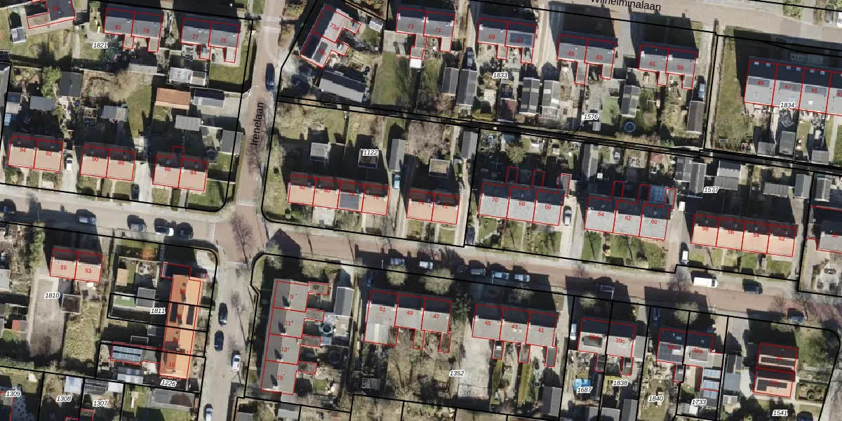 Het perceel waarop Marijkelaan 74 staat heeft een oppervlakte van 1370 m². Dit is een zeer groot perceel. De perceeloppervlakte wordt geregistreerd door het Kadaster. Gedetailleerde informatie over de maten van dit perceel kunt u vinden in het rapport Kadastrale kaart met maatvoering van Marijkelaan 74.