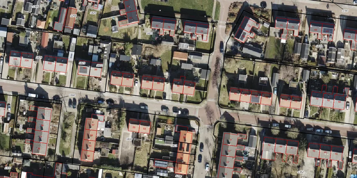 Het perceel waarop Marijkelaan 86 staat heeft een oppervlakte van 2896 m². Dit is een zeer groot perceel. De perceeloppervlakte wordt geregistreerd door het Kadaster. Gedetailleerde informatie over de maten van dit perceel kunt u vinden in het rapport Kadastrale kaart met maatvoering van Marijkelaan 86.