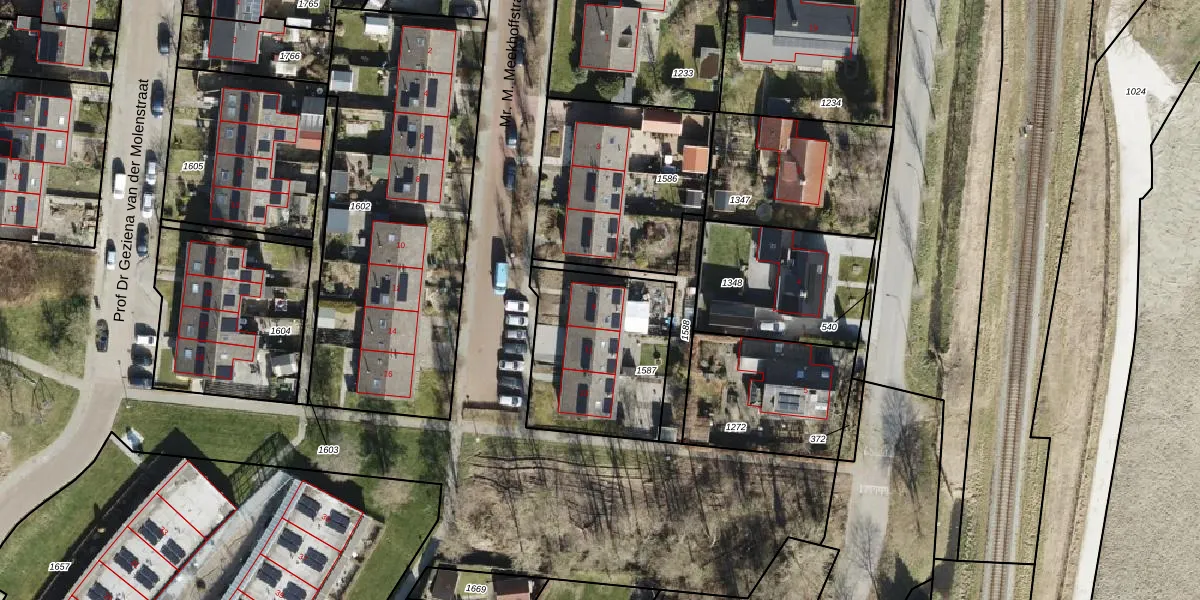 Het perceel waarop Mr. M. Meekhoffstraat 9 staat heeft een oppervlakte van 605 m². Dit is een groot perceel. De perceeloppervlakte wordt geregistreerd door het Kadaster. Gedetailleerde informatie over de maten van dit perceel kunt u vinden in het rapport Kadastrale kaart met maatvoering van Mr. M. Meekhoffstraat 9.