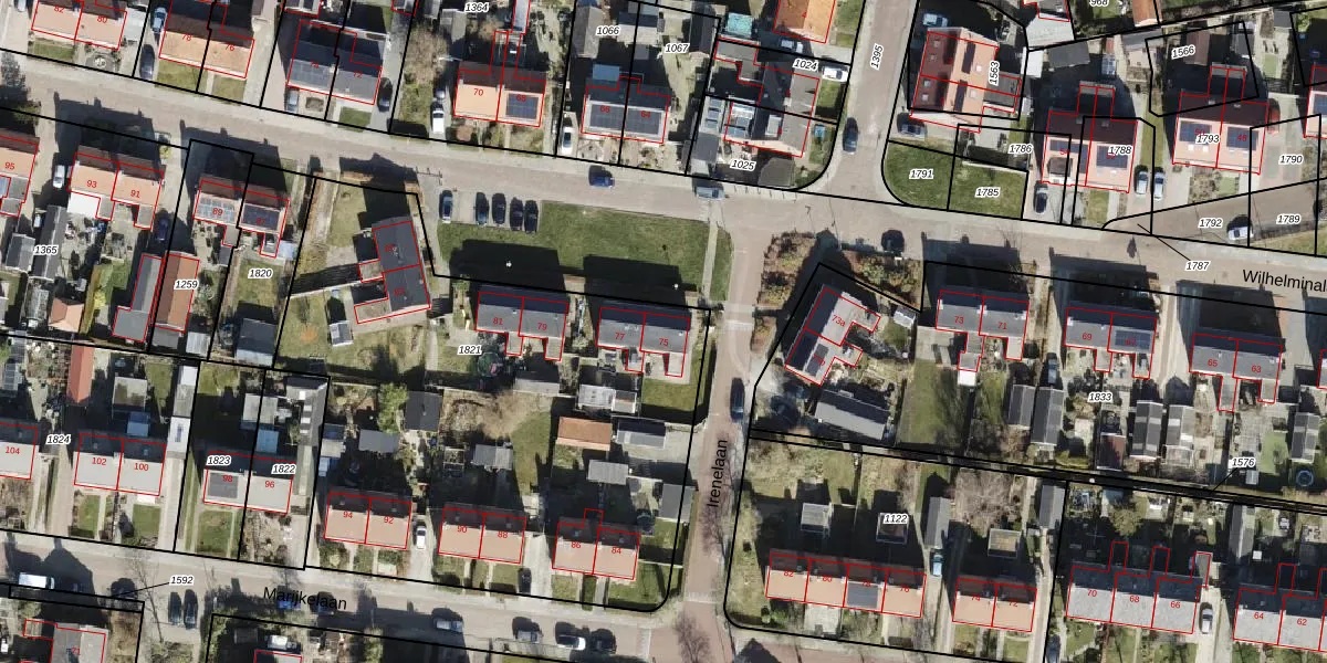 Het perceel waarop Wilhelminalaan 75 staat heeft een oppervlakte van 2896 m². Dit is een zeer groot perceel. De perceeloppervlakte wordt geregistreerd door het Kadaster. Gedetailleerde informatie over de maten van dit perceel kunt u vinden in het rapport Kadastrale kaart met maatvoering van Wilhelminalaan 75.