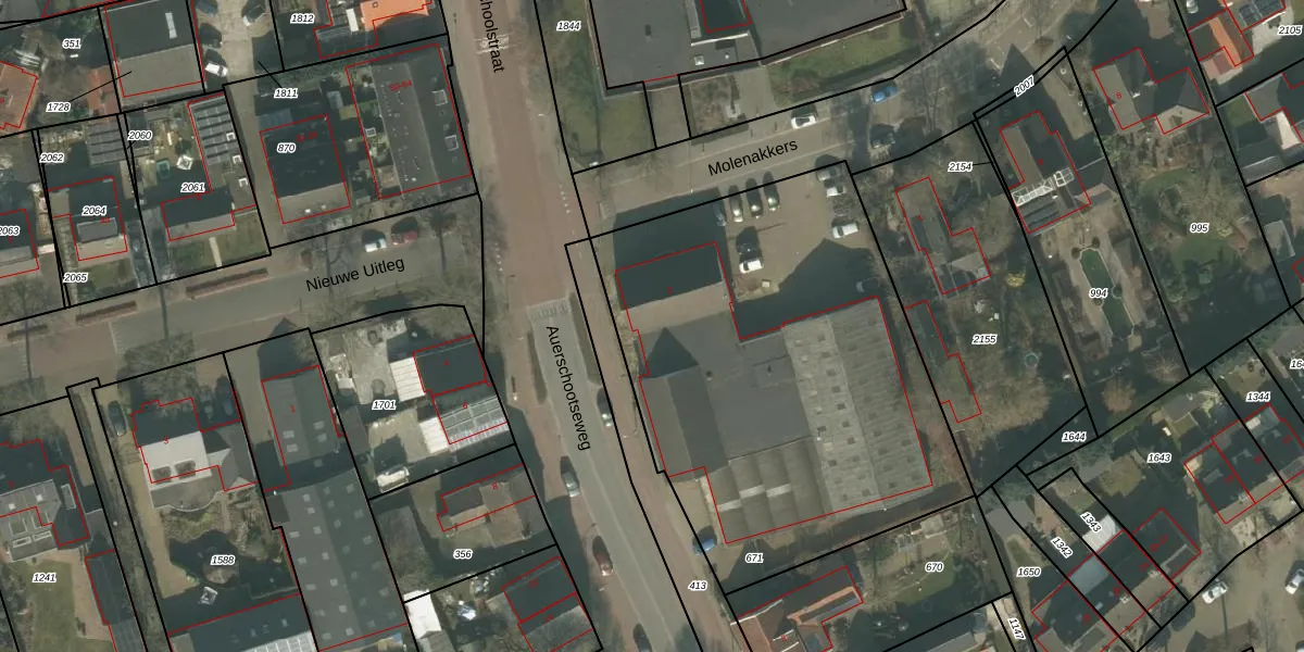 Auerschootseweg 1 is gelegen op kadastraal perceel BKL02T671. Deze kadastrale aanduiding is uniek en wordt gebruikt door het Kadaster om eigendomsrechten en andere zakelijke rechten vast te leggen. Het perceel maakt onderdeel uit van de kadastrale gemeente Bakel en Milheeze.