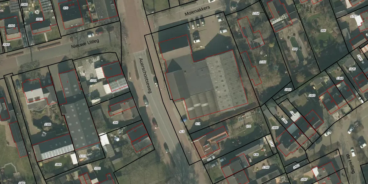 Het perceel waarop Auerschootseweg 1-m staat heeft een oppervlakte van 2405 m². Dit is een zeer groot perceel. De perceeloppervlakte wordt geregistreerd door het Kadaster. Gedetailleerde informatie over de maten van dit perceel kunt u vinden in het rapport Kadastrale kaart met maatvoering van Auerschootseweg 1-m.