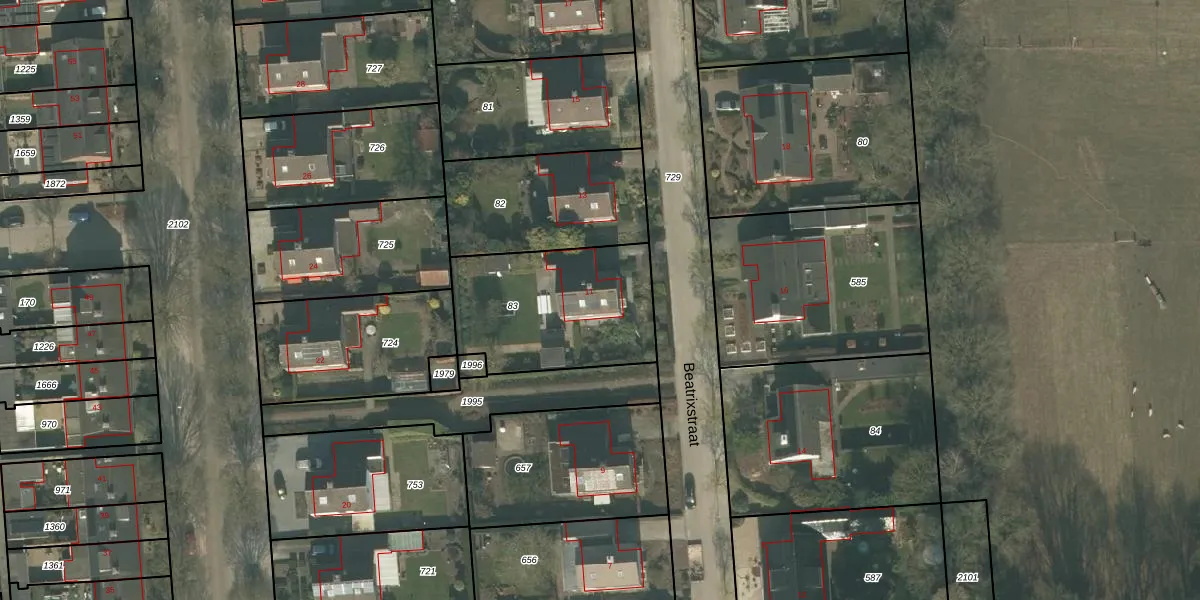 Het perceel waarop Beatrixstraat 11 staat heeft een oppervlakte van 647 m². Dit is een groot perceel. De perceeloppervlakte wordt geregistreerd door het Kadaster. Gedetailleerde informatie over de maten van dit perceel kunt u vinden in het rapport Kadastrale kaart met maatvoering van Beatrixstraat 11.