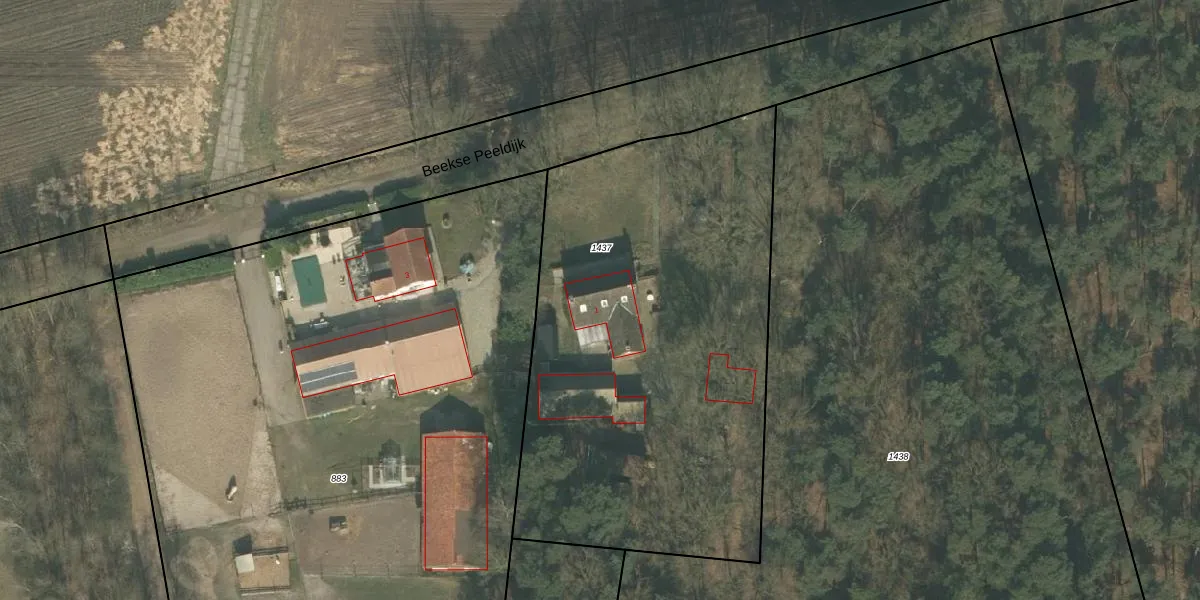 Beekse Peeldijk 1 is gelegen op kadastraal perceel BKL02K1437. Deze kadastrale aanduiding is uniek en wordt gebruikt door het Kadaster om eigendomsrechten en andere zakelijke rechten vast te leggen. Het perceel maakt onderdeel uit van de kadastrale gemeente Bakel en Milheeze.