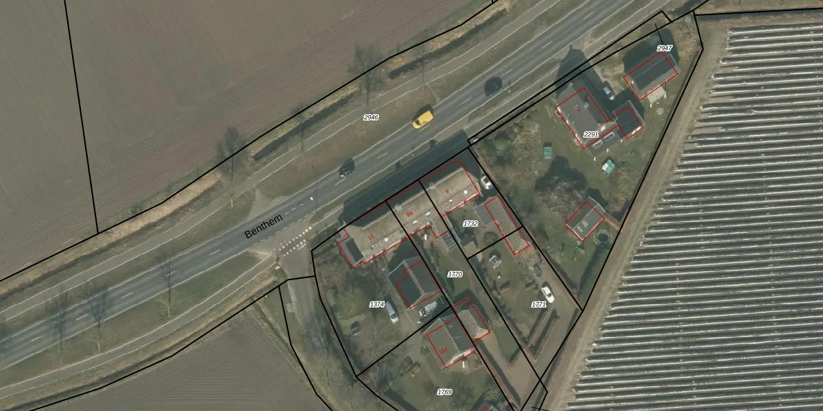 Het perceel waarop Benthem 9-a staat heeft een oppervlakte van 555 m². Dit is een groot perceel. De perceeloppervlakte wordt geregistreerd door het Kadaster. Gedetailleerde informatie over de maten van dit perceel kunt u vinden in het rapport Kadastrale kaart met maatvoering van Benthem 9-a.