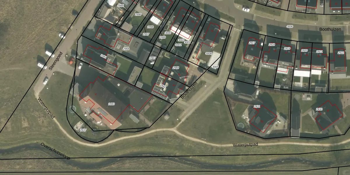 Het perceel waarop Boothuizen 47 staat heeft een oppervlakte van 347 m². Dit is een groot perceel. De perceeloppervlakte wordt geregistreerd door het Kadaster. Gedetailleerde informatie over de maten van dit perceel kunt u vinden in het rapport Kadastrale kaart met maatvoering van Boothuizen 47.