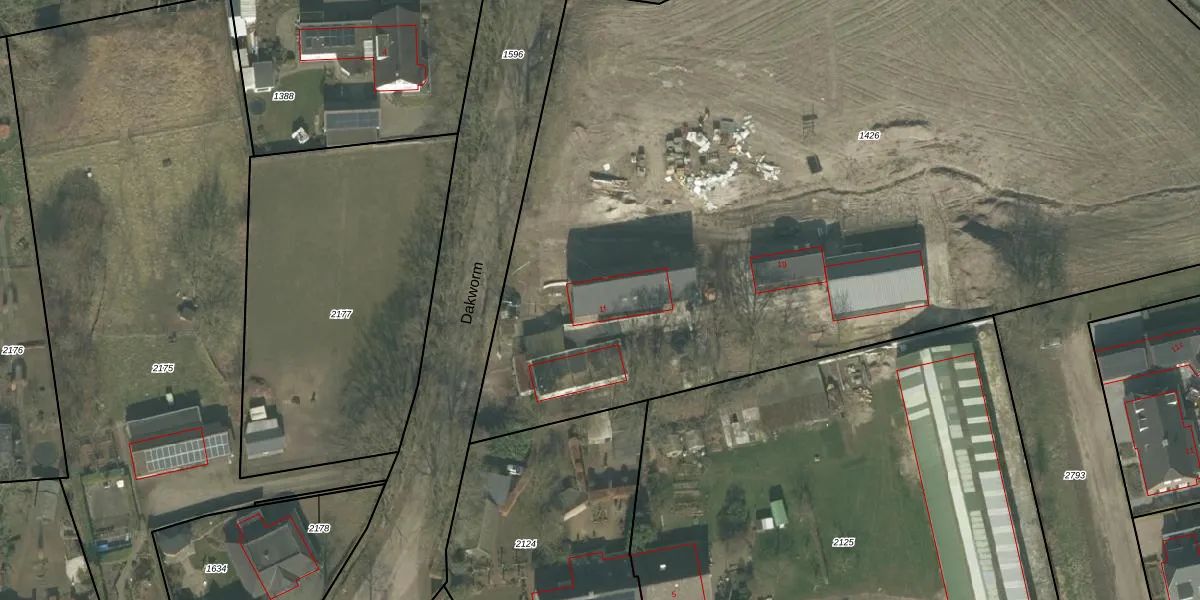Het perceel waarop Dakworm 1-f staat heeft een oppervlakte van 8470 m². Dit is een zeer groot perceel. De perceeloppervlakte wordt geregistreerd door het Kadaster. Gedetailleerde informatie over de maten van dit perceel kunt u vinden in het rapport Kadastrale kaart met maatvoering van Dakworm 1-f.